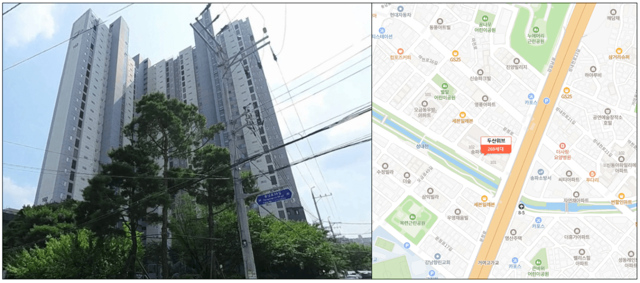 반면 송파두산위브는 나홀로 단지로 세대수도 적고 주변에는 인프라라고는 전무한 단지이면서 비역세권으로 거주하기에도 불편할 것이 예상됩니다.