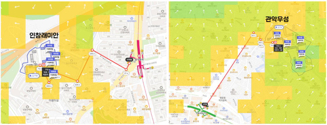 두 단지 모두 역과의 거리가 10분 정도 되고