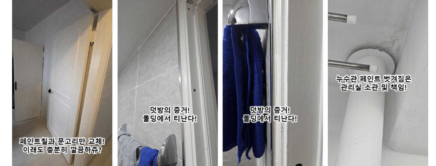 - 꼭 짚고 넘어가야 할 것 : 젖은흔적 혹은 곰팡이 (비만 오면 그런건지 아닌지)에 대한 원악
