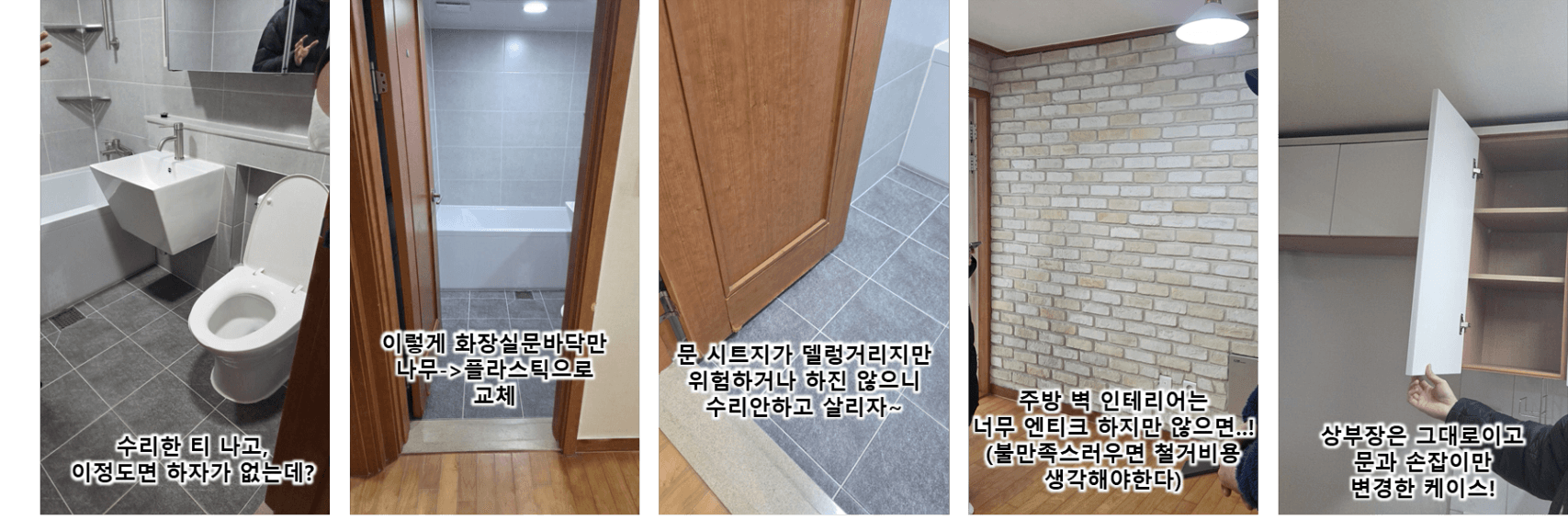 - 화장실문 : 사는데 무리없는 수준이라면 그냥 살리는 것이 좋음.