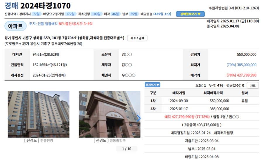이 아파트는 낙찰 당시 시세 4억 이상인 아파트를
