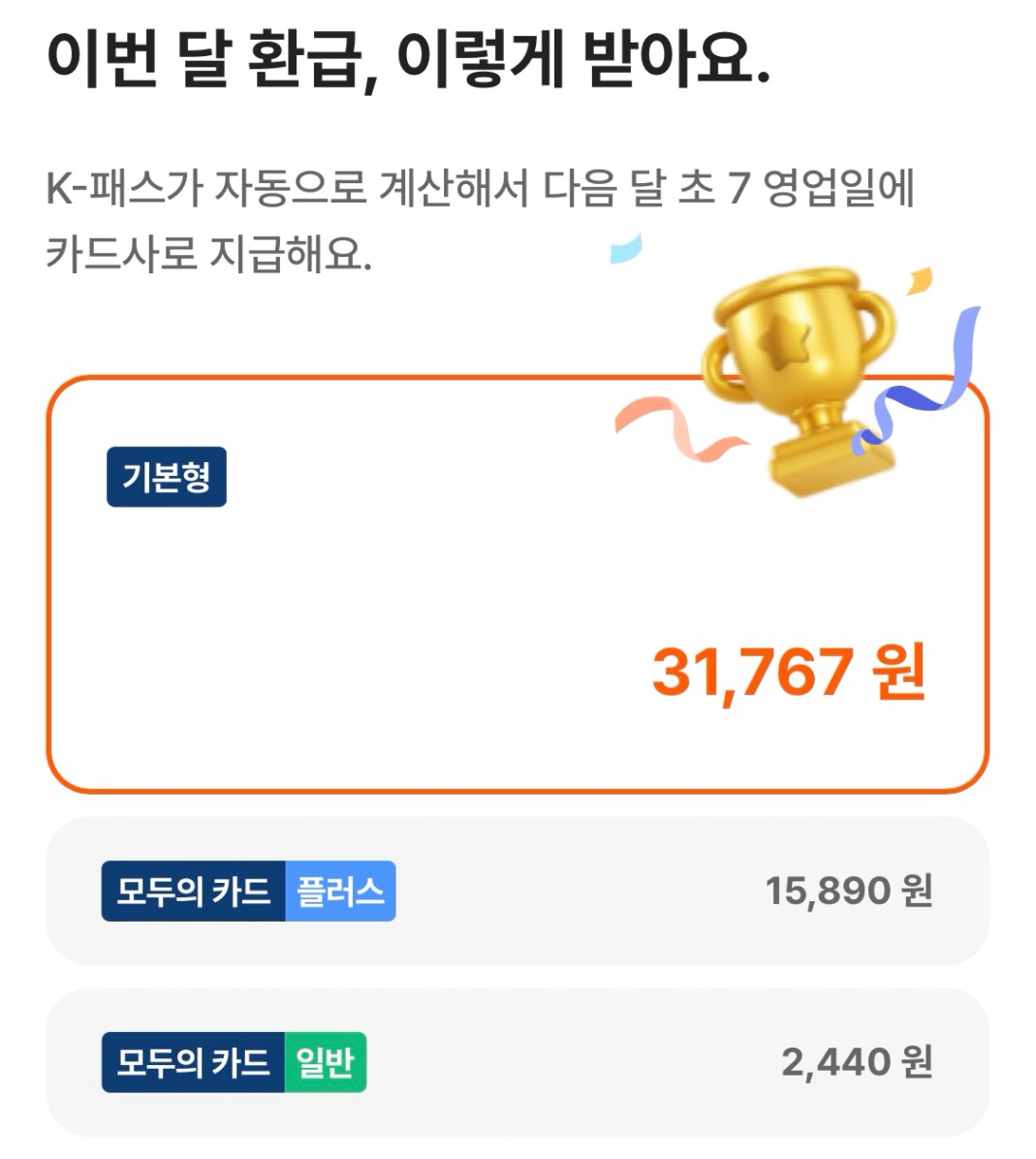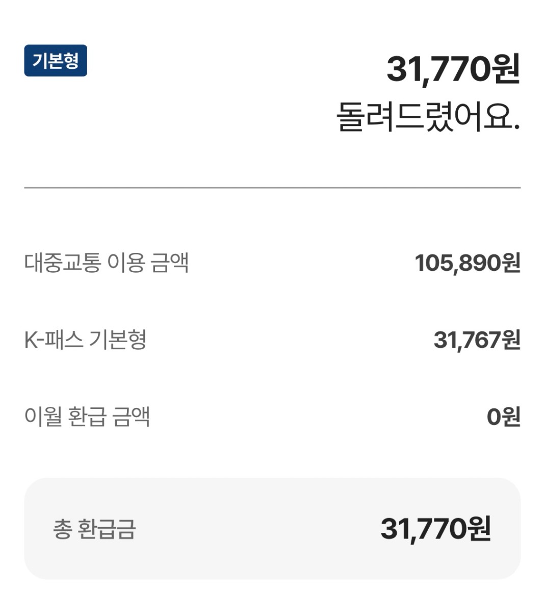 기존 K-패스는 사용금액의 일정 %를 환급해줬는데