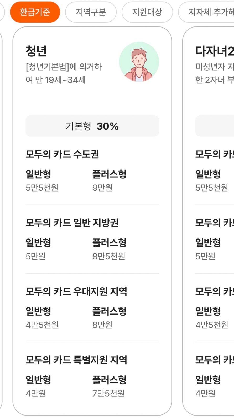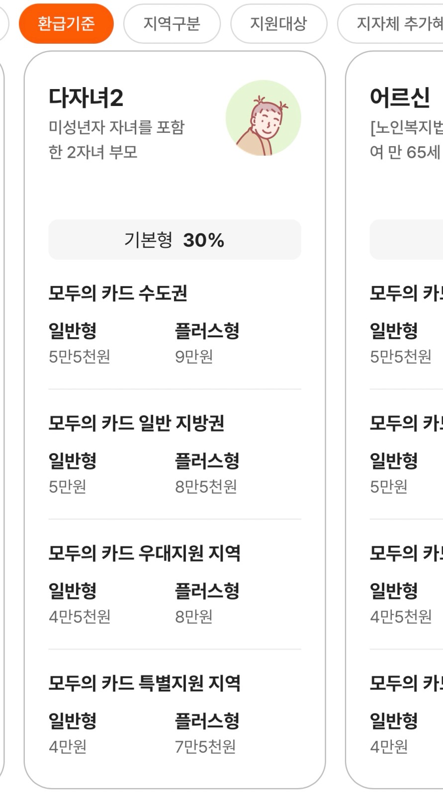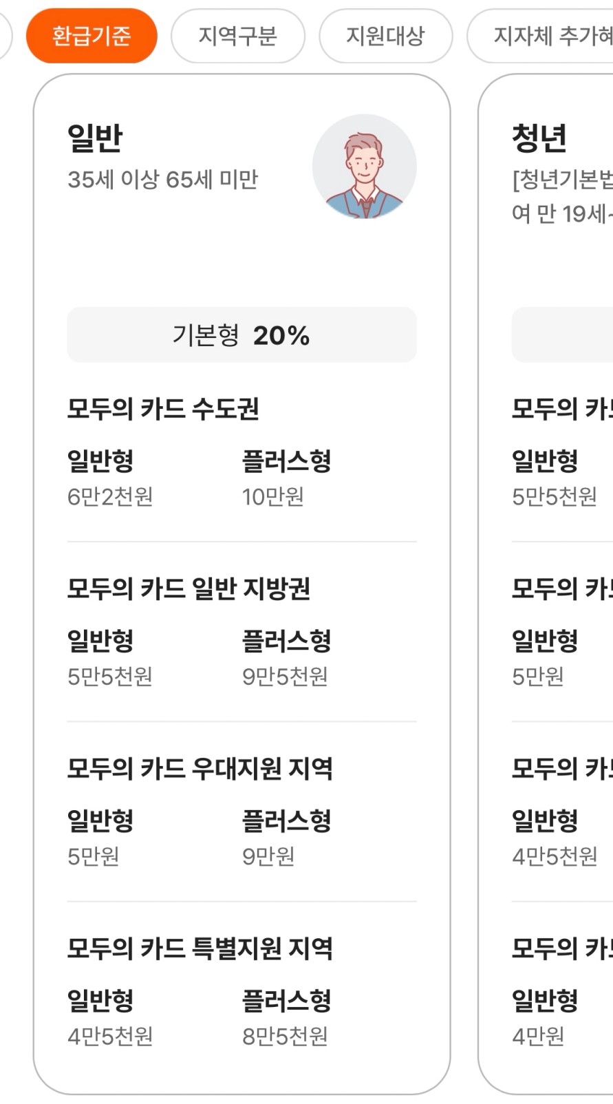모두의카드 기준 금액은 연령/소득별로 상이하니