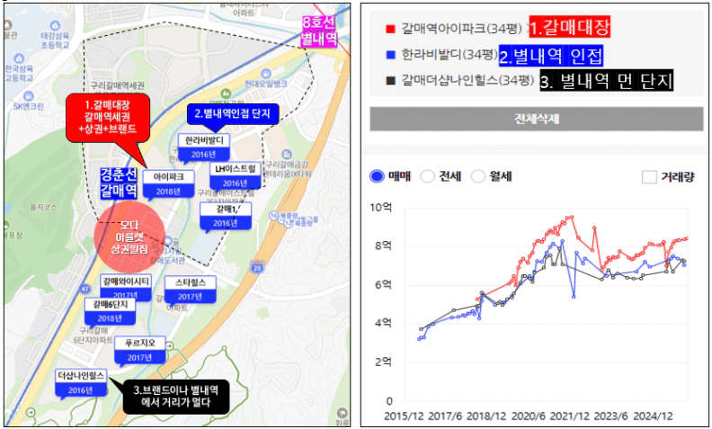정리하면 갈매역 생활권에서는 ‘브랜드와 별내역 인접성’을 가격 결정 요소로 들 수 있습니다.