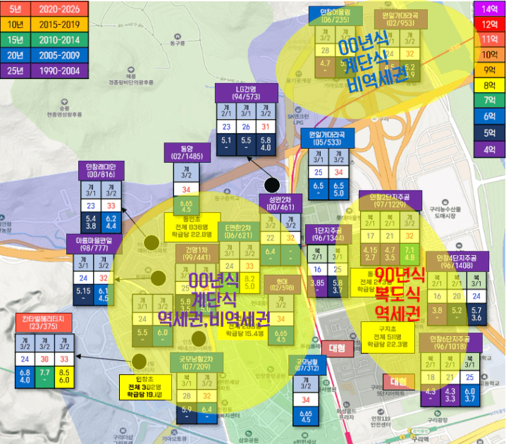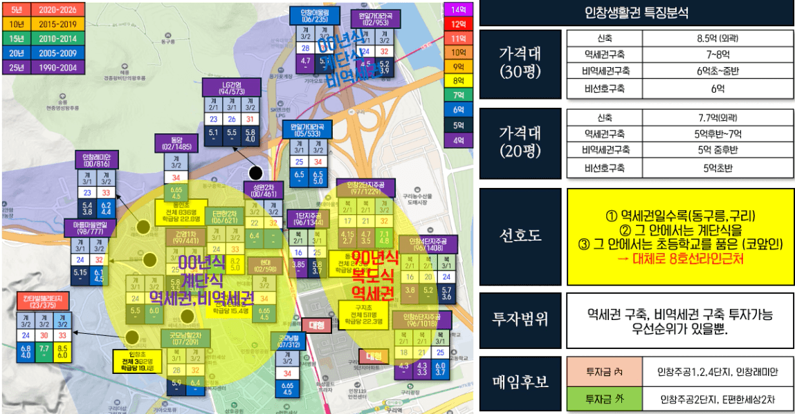 그렇기 때문에 이 한 장의 시세지도를 통해서 인창생활권의 선호도는 이렇게 정리해볼 수 있습니다.
