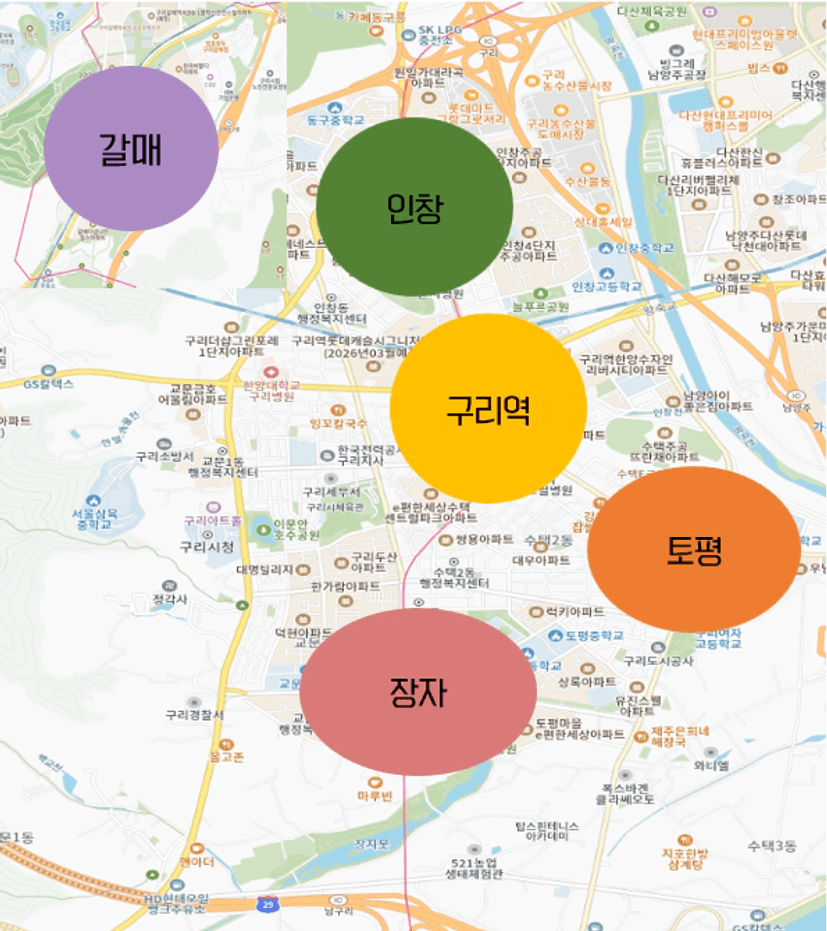 구리시는 하단에 작성한 5가지에 생활권으로 나눠볼수 있으며