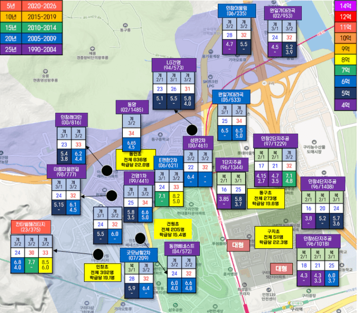 [구리시 인창동 시세지도]
