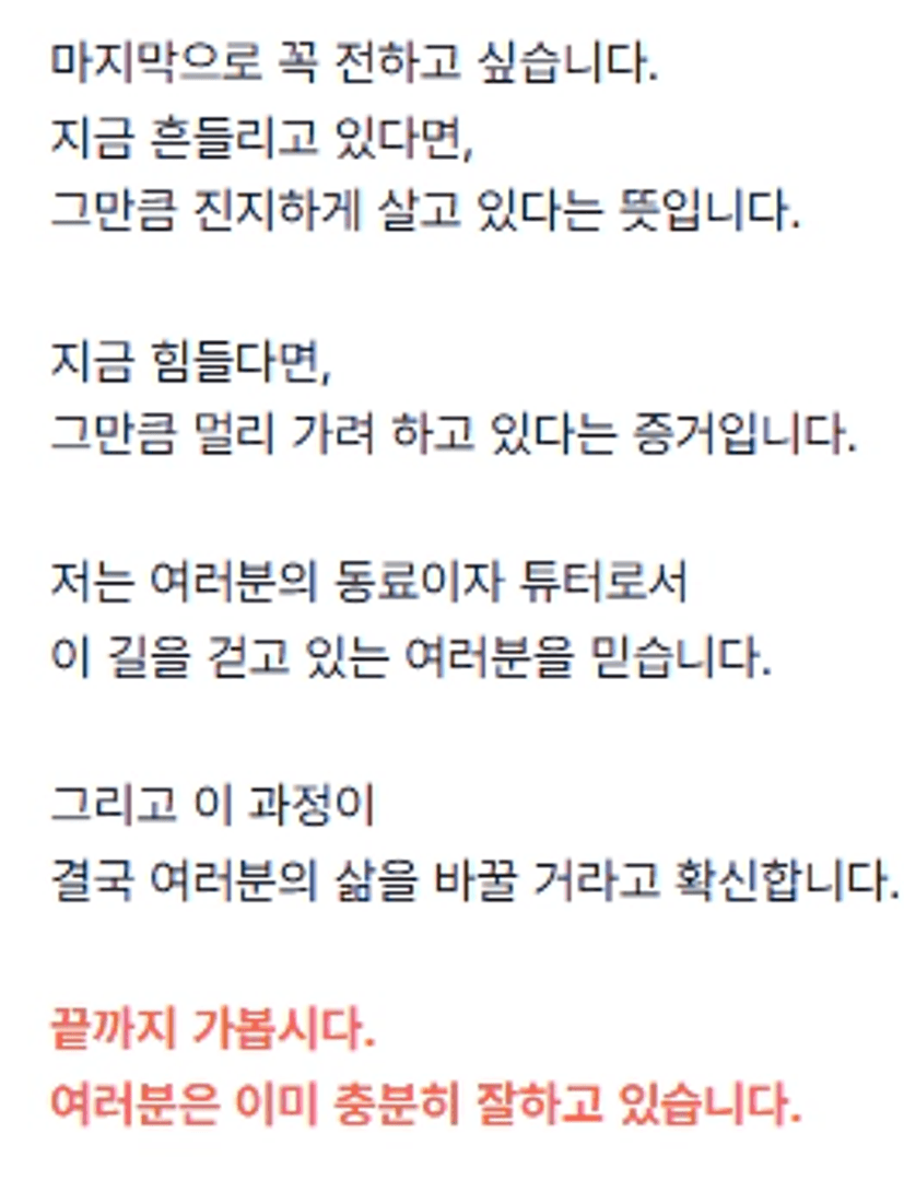 감동적이게도 튜터님께서 크고 따뜻한 위로의 글을 남겨주셨으니…