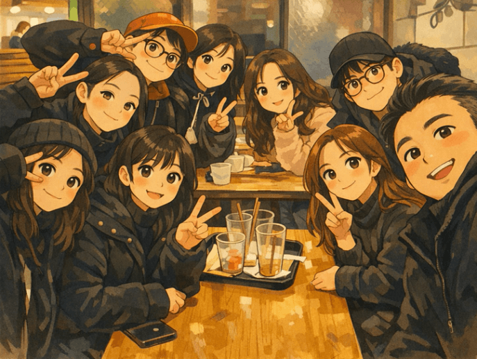 카페에서 함께 이야기 나누며