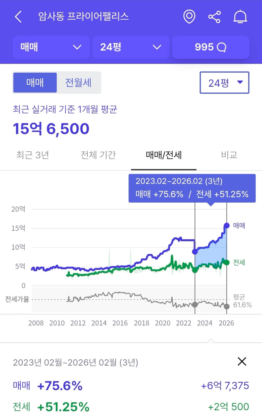 전고 대비 30% 하락: 6억 초반 상승)
