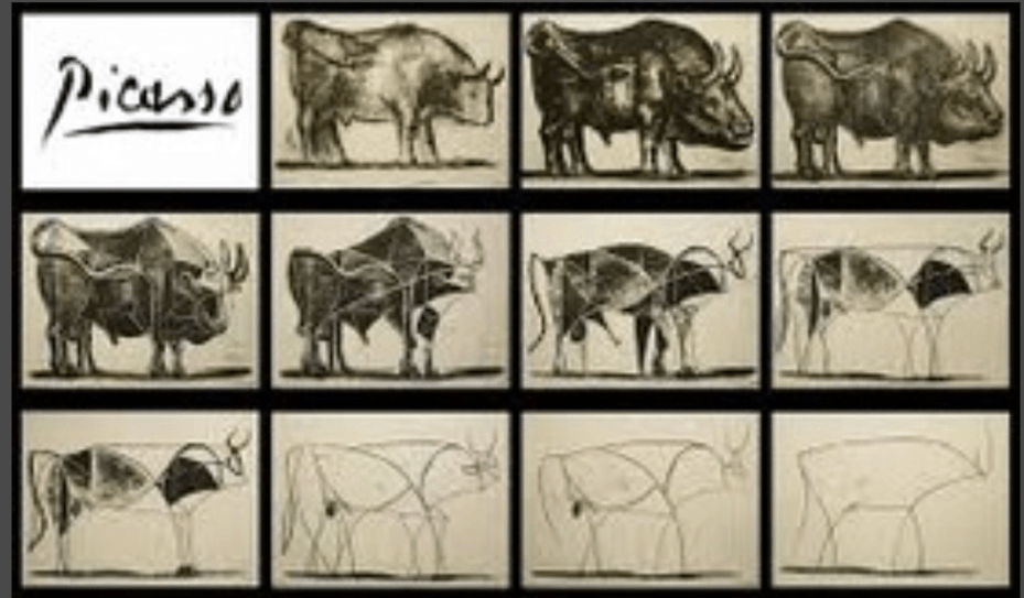 강의 첫머리에 보여드린 피카소의 연작을 다시 한 번 보시죠. 이 작품을 그리면서 피카소가 했던 일은 아이디어를 더하는 게 아니라 빼는 것이었습니다.