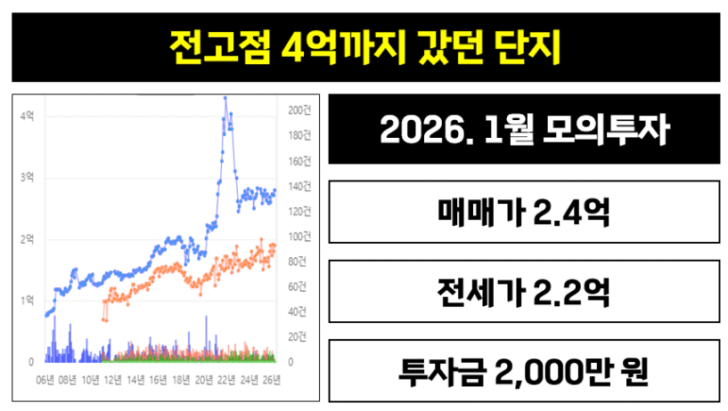 부동산은 사이클이 존재하기에 상승장과 하락장을 반복하면서 기회를 주기적으로 주곤 합니다. 지금도 충분히 적은 돈으로 투자할 수 있는 단지들이 존재합니다.