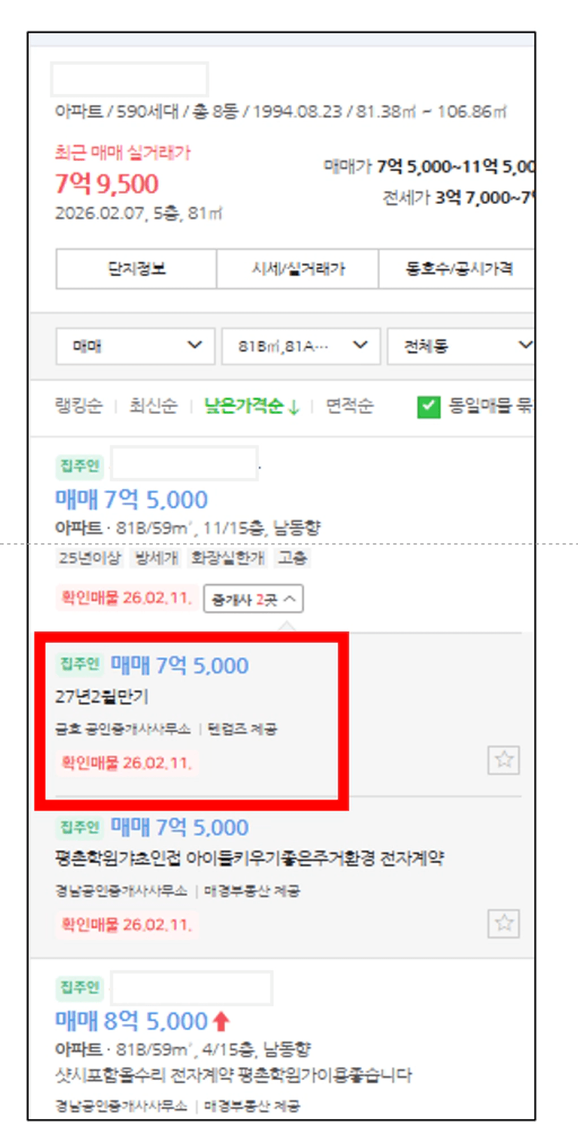 실제 사례 – 매물이 조금씩 나오고 있습니다.