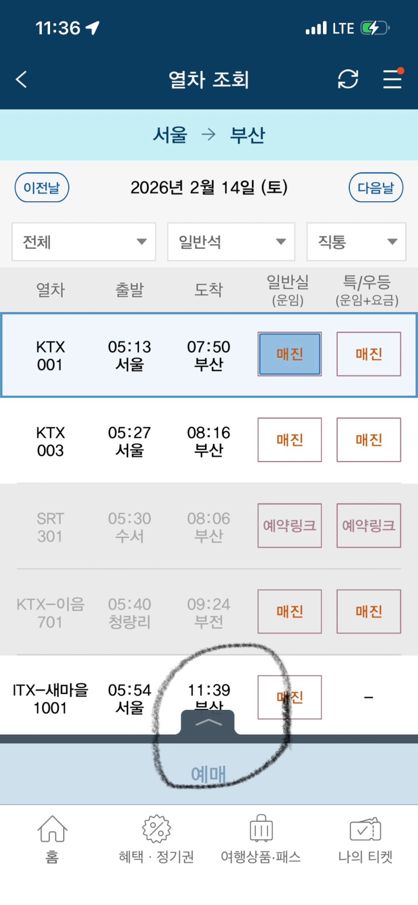 전날밤 혹은 당일 새벽에 취소표가 나오곤 하는데요,