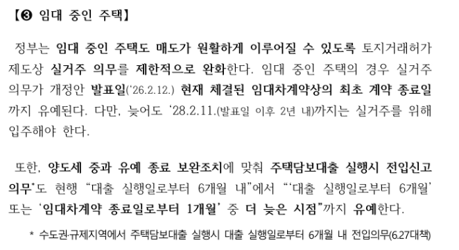 실거주 의무가 개정안 발표일, 2026년 2월 12일 현재 체결된