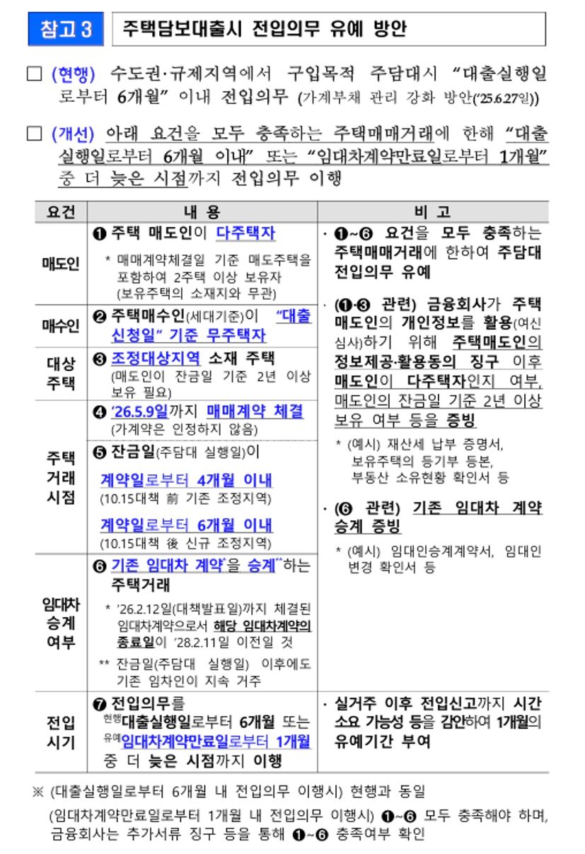 주택담보대출 시 전입 의무 유예 방안도 만들 거예요.