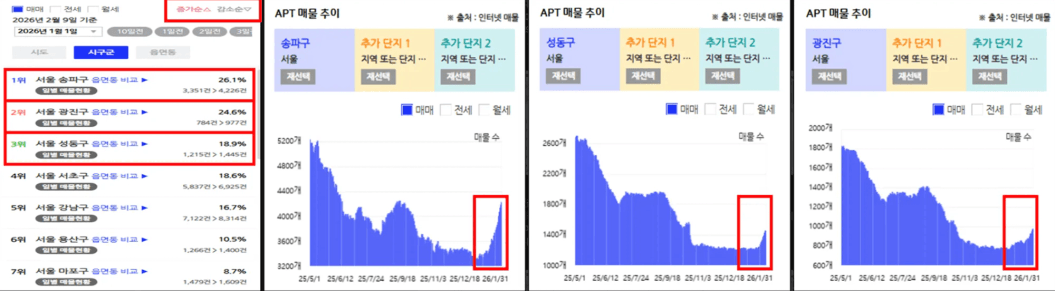 규제 적용 이후, 송파·성동·강남 일부 단지에서