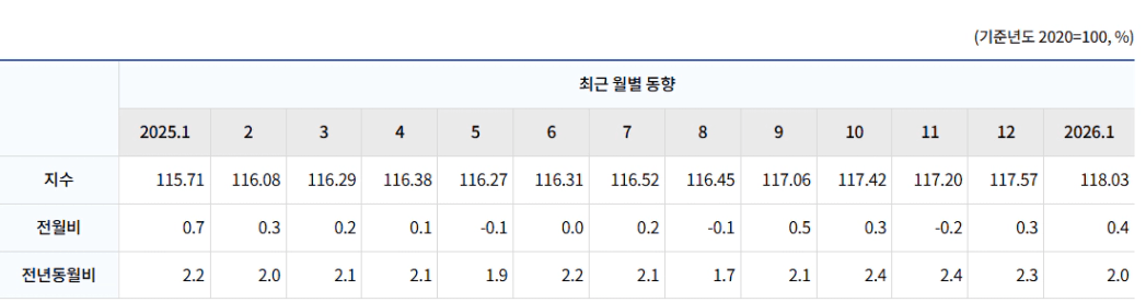 • 출처 CPI 소비자물가지수 누리집 - 총지수 동향, 2025년 소비자물가지수