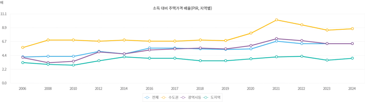 출처 지표누리-소득 대비 주택가격 비율(PIR)