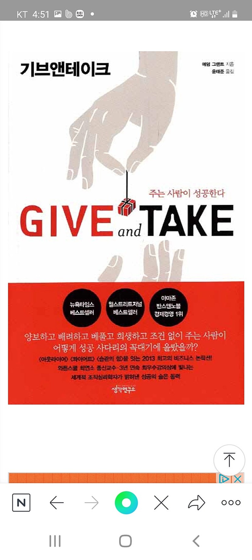 책 제목(책 제목 + 저자) : 기브앤 테이크