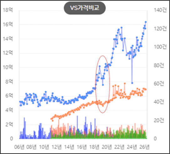 이후 시장의 저금리와 임대차 법 등으로 인해 다시 상승하는 흐름으로 전환되었지만