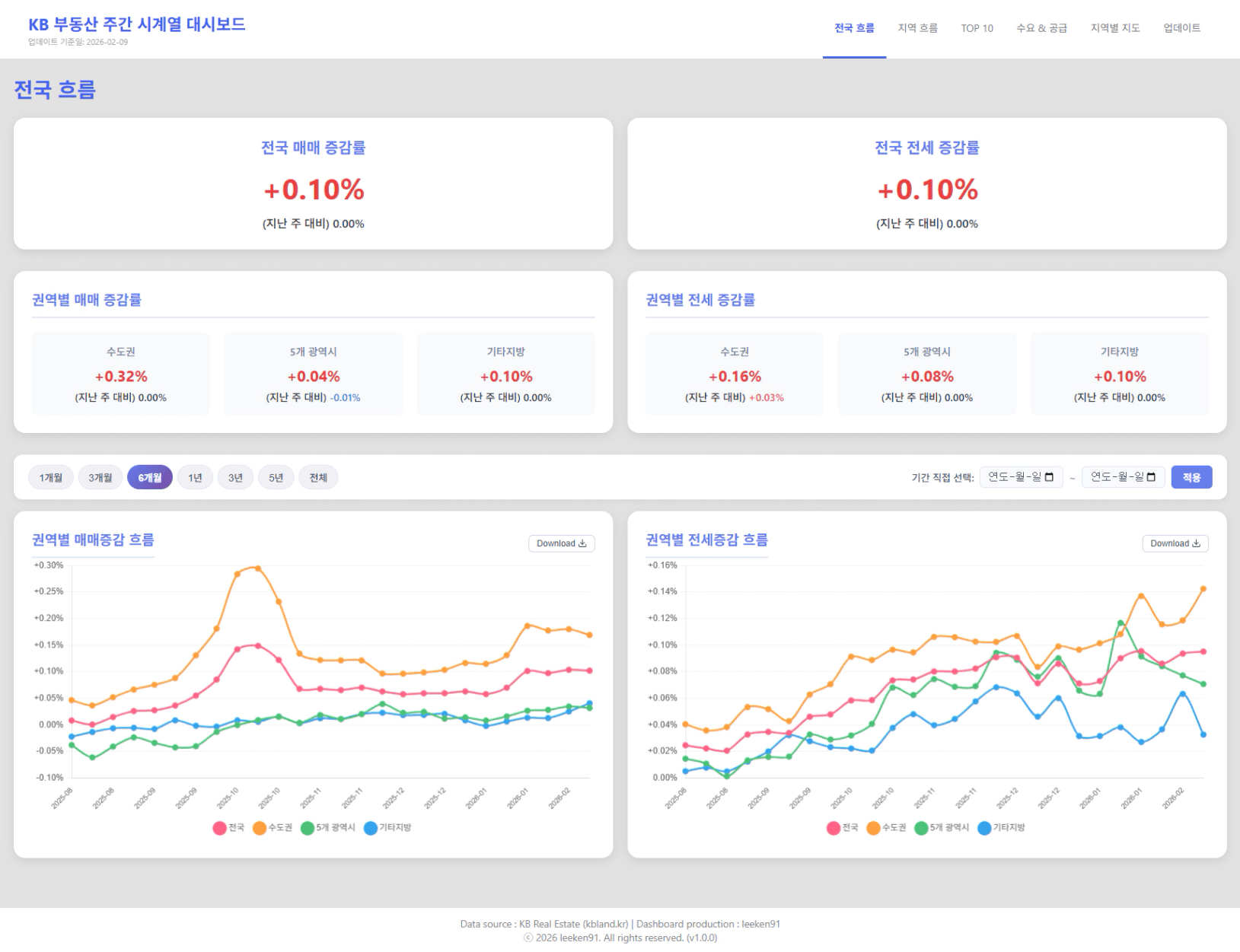 KB 부동산 주간 시계열 대시보드의 업데이트 소식을 알리기 위해 글을 작성하게 되었습니다.