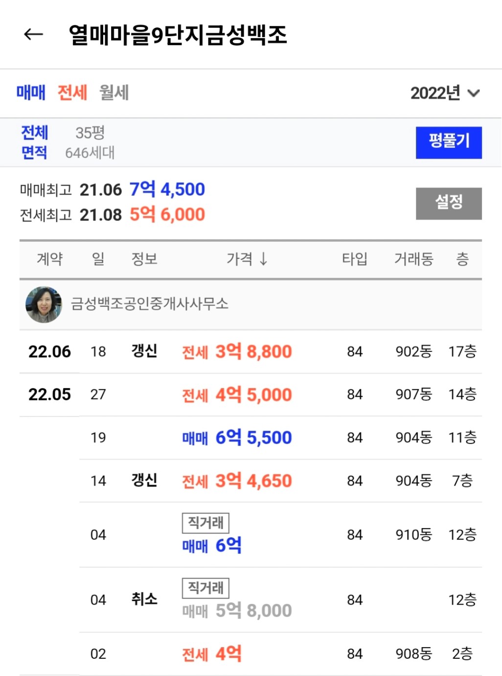 18년 5월에 한화10단지는 3.65억/2.8억으로