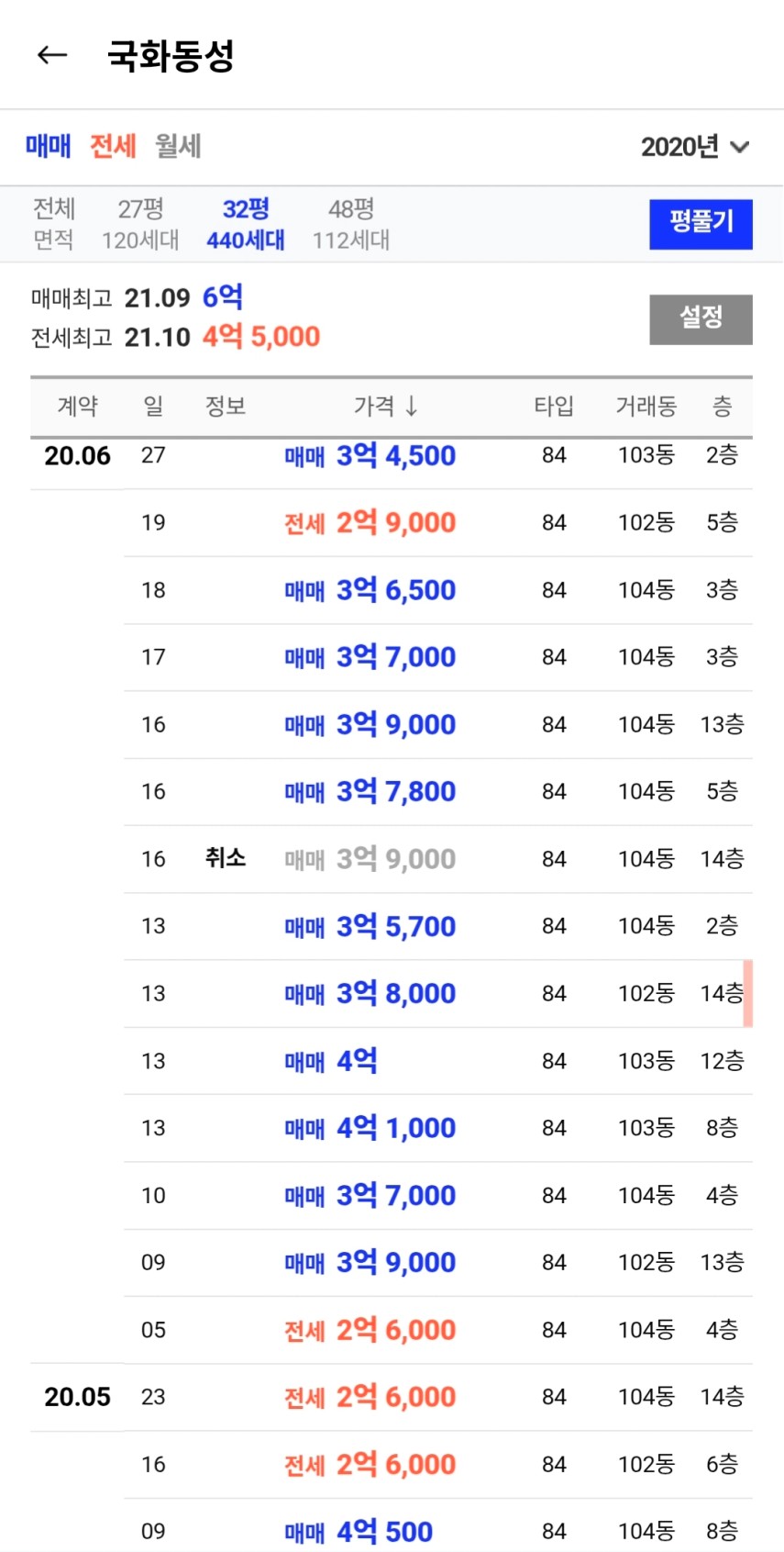 전월세를 모두 합쳐도 5,6월에 5건 미만입니다.