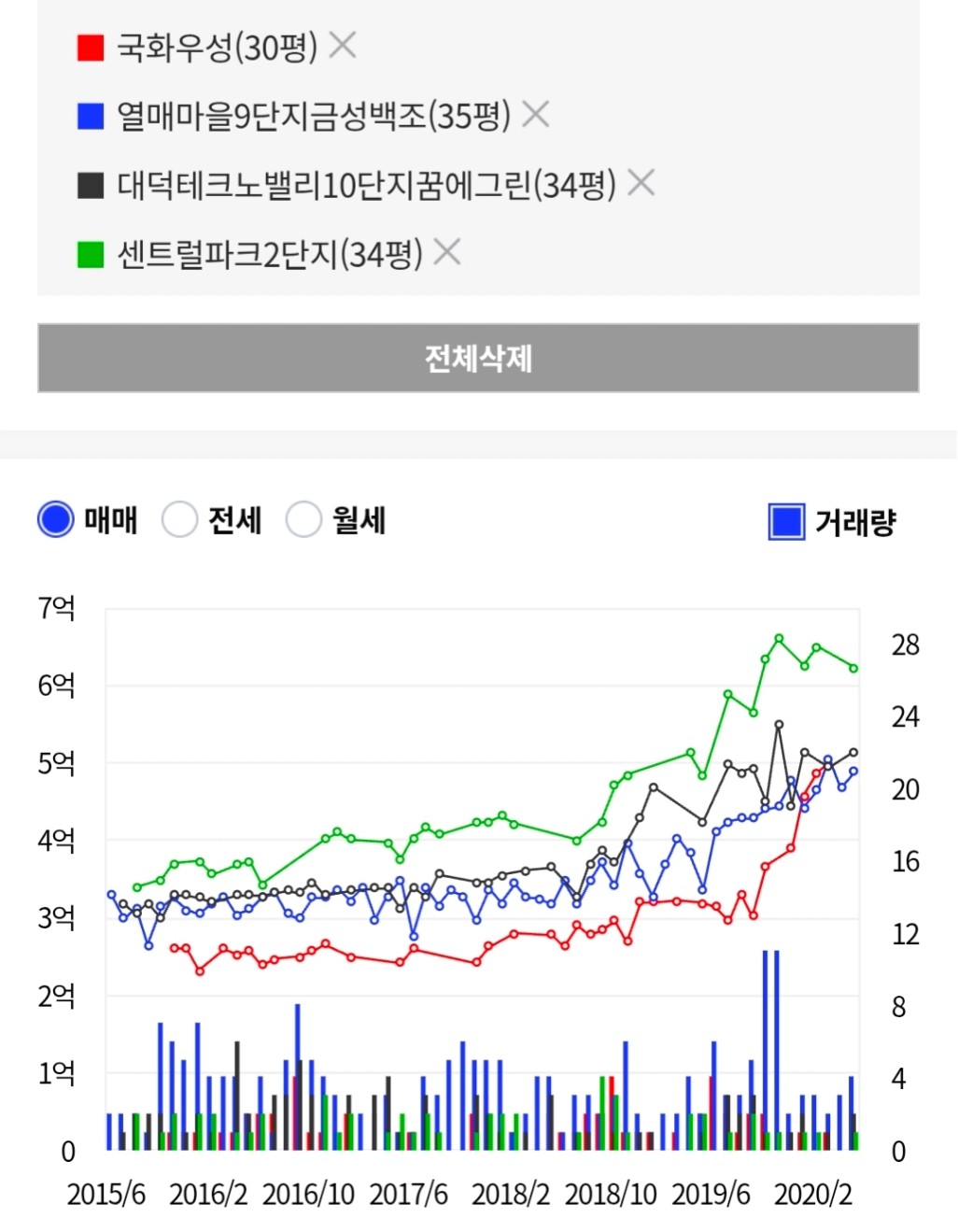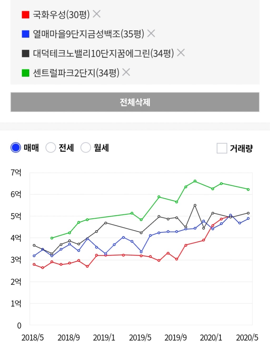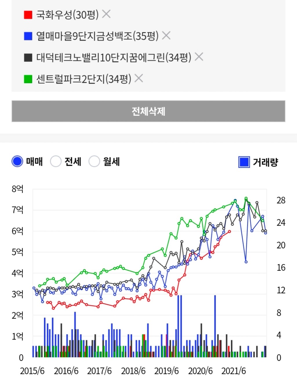 덜 좋은 구축의 거래량을 비교해보려 합니다.