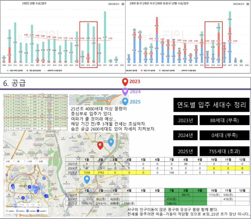 특히 24~25년에는 대전 내에서 위치가 좋은 곳에 공급이 있었기에 역전세 및 공실 리스크가 있는 상황입니다.