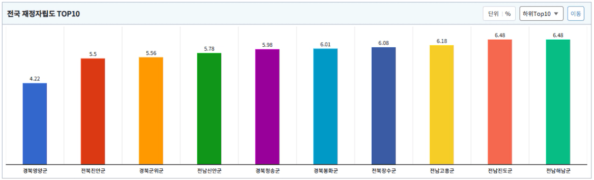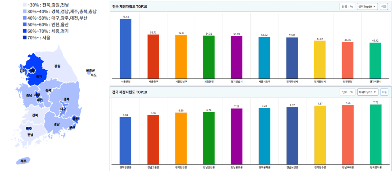 2025년 전국 재정자립도 & 상위 10, 하위 10