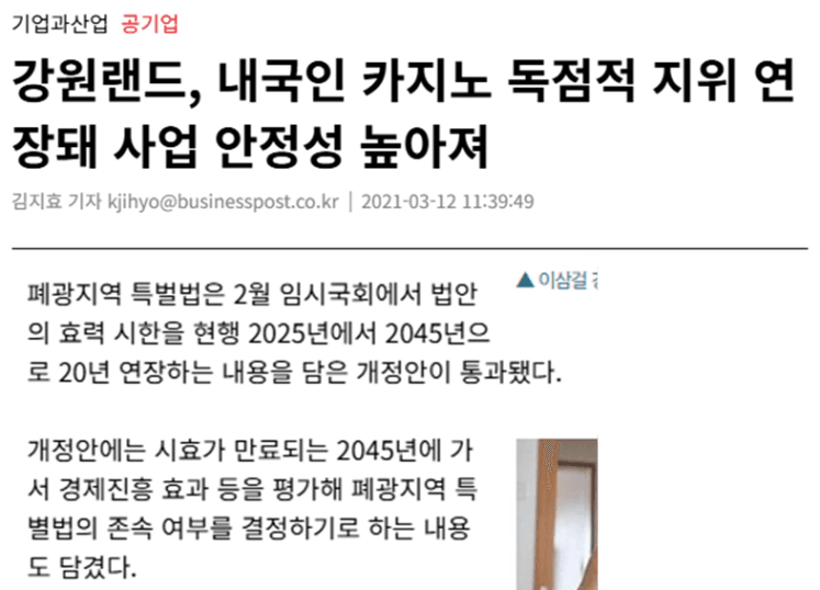 강원랜드 내국인 독점 20년 연장 ㅎㄷㄷ