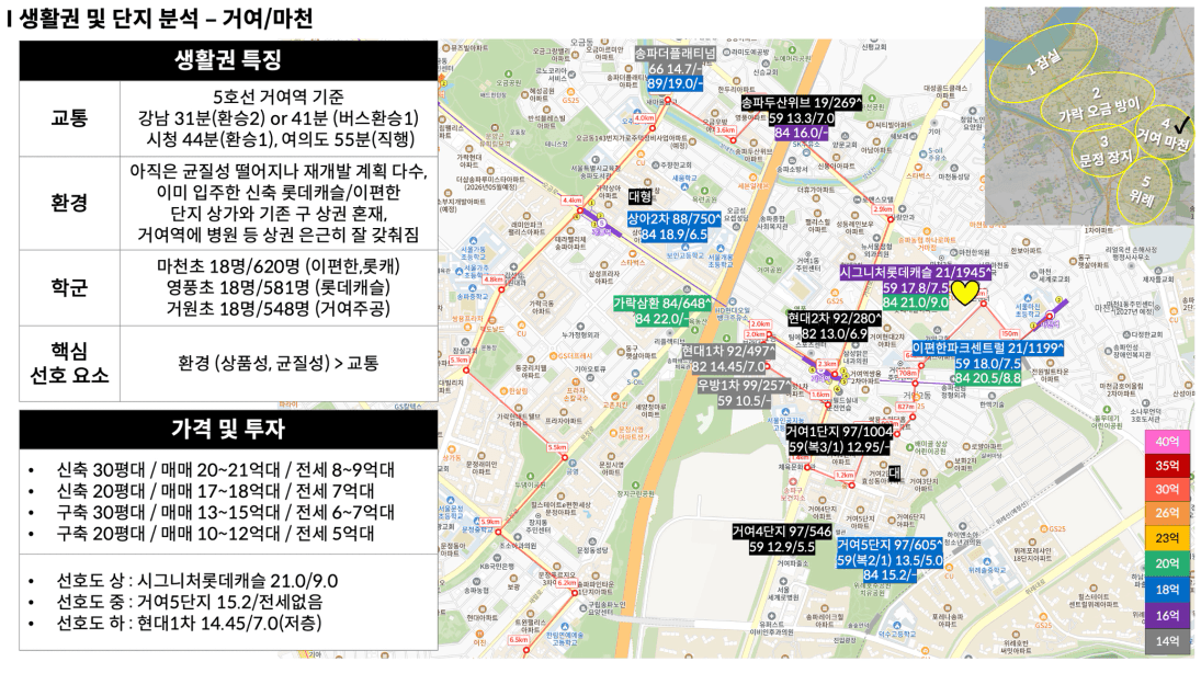 거여5단지 : 택지로 지어져 학교 있는 주공 선호, 역세권이더라도 비균질해서 무서운 우성 후순위
