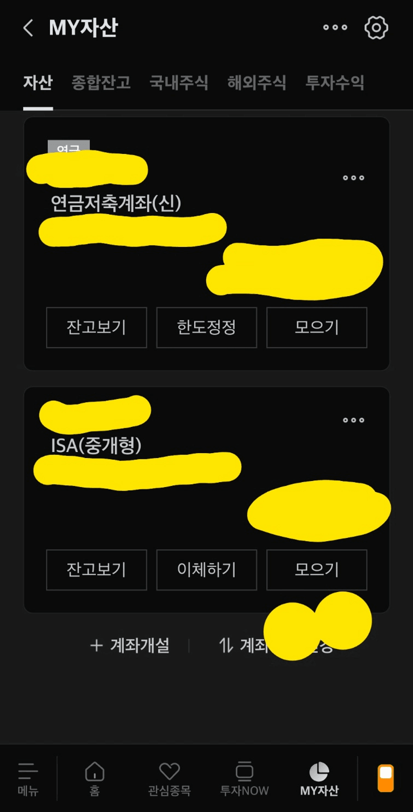 작년에 미래에셋증권에서 개인연금저축계좌와 ISA 계좌를 모두 개설했습니다.