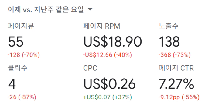 페이지뷰가 절반 가까이 떨어졌는데 1달러 이상 나와준게