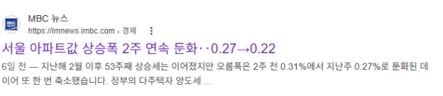 잠시 서울 아파트 상승폭이 최근에 주춤하고 있다는 기사부터