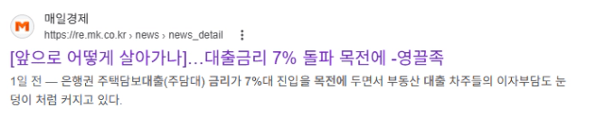 고정형 대출 금리가 7%까지 올랐다는 기사까지