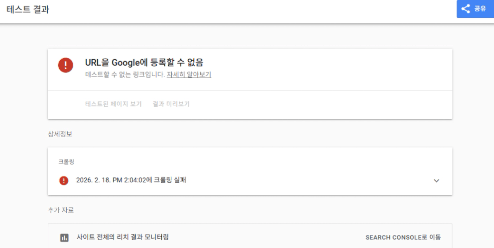 2주차 보너스 강의 수강 중입니다. 글 별 스니펫 추가 단계 진행중인데 리치 스니펫 사이트에서 url 입력후 테스트 클릭하였는데 아래와 같은 문구가 뜹니다. 해결 방법 문의드려요.