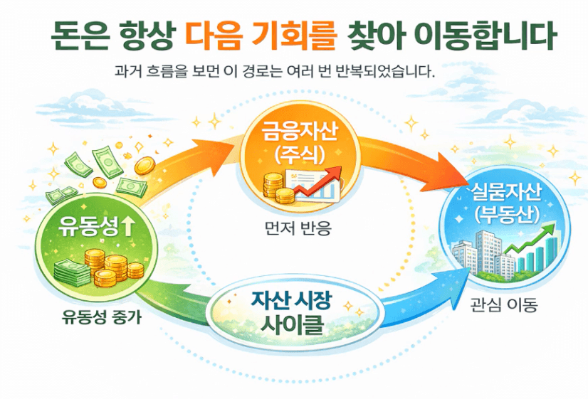 부동산 같은 실물자산으로 관심이 이동합니다.