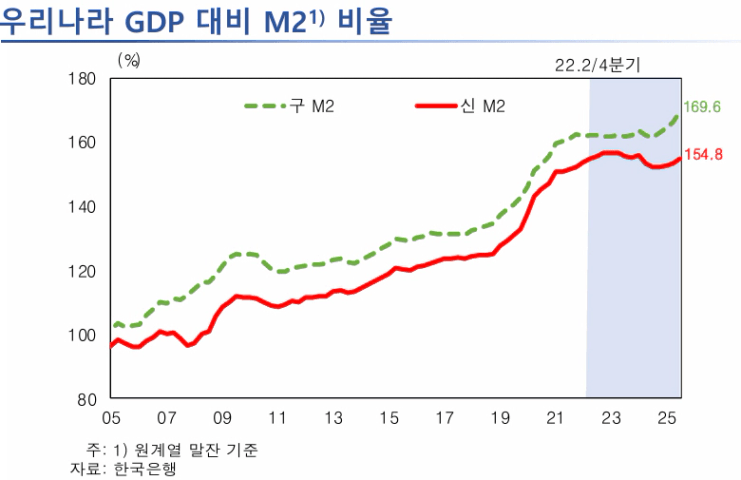 2005년 이후 M2/GDP 비율이 지속적으로 상승