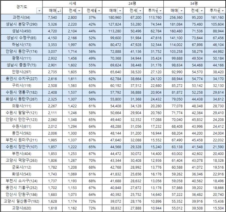 평형별 시세와 투자금을 알아볼 수 있고, 해당 임장지 시세, 내투자금으로 어디를 볼 수 있는지 도움이 됩니다.