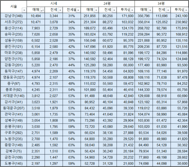 매달 시세파트에서 서울과 수도권, 광역시 평당가를 알아보는데요,