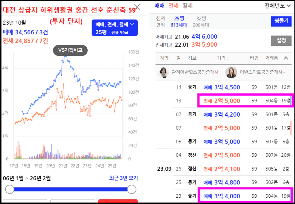 위와 같은 답도 없는 의사결정 프로세스(?)를 통해 당시 제 앞마당에서 제가 설정한 투자금으로 투자할 수 있는 지역은 거의 대전이 유일했습니다.