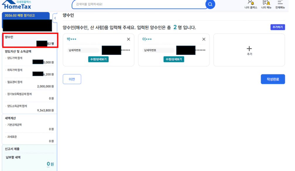 저는 매수자가 부부 공동명의였기 때문에, 추가란에 한명씩 추가하여서 2명을 추가하였습니다.