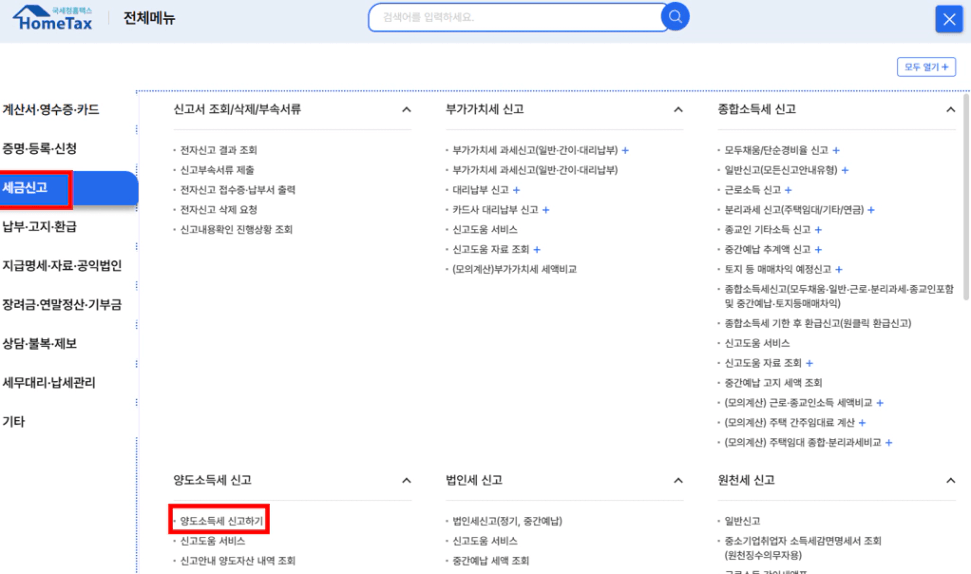 홈텍스로 들어가서 전체메뉴 클릭합니다.