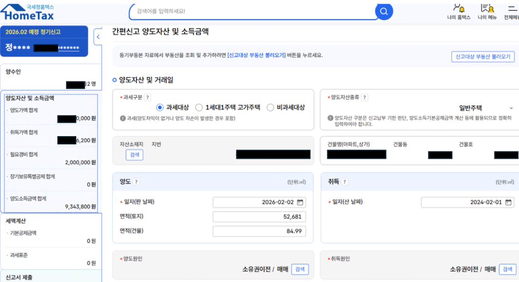 얼마전 매도를 하고 양도소득세 신고를 인터넷으로 할 수 있었습니다.