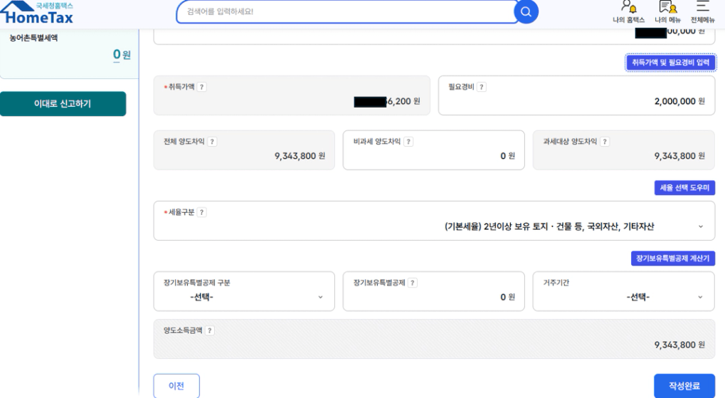 취득가액과 필요경비 입력란이 정말 편했습니다.