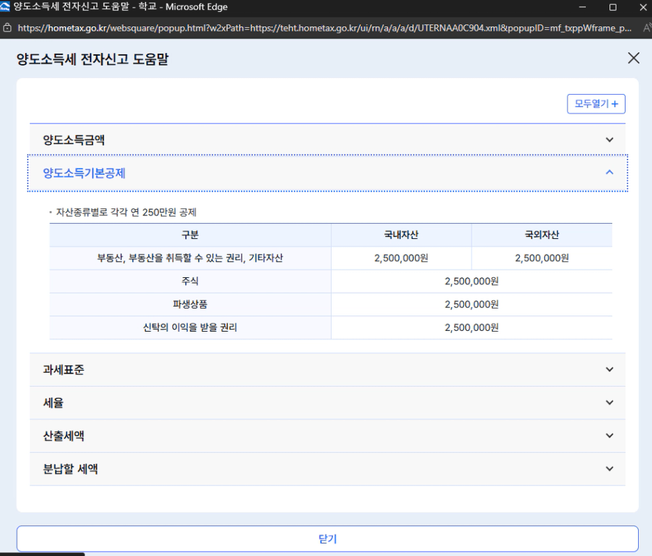 1년에 부동산 국내자산 개별 250만원 공제까지 들어가더라구요.