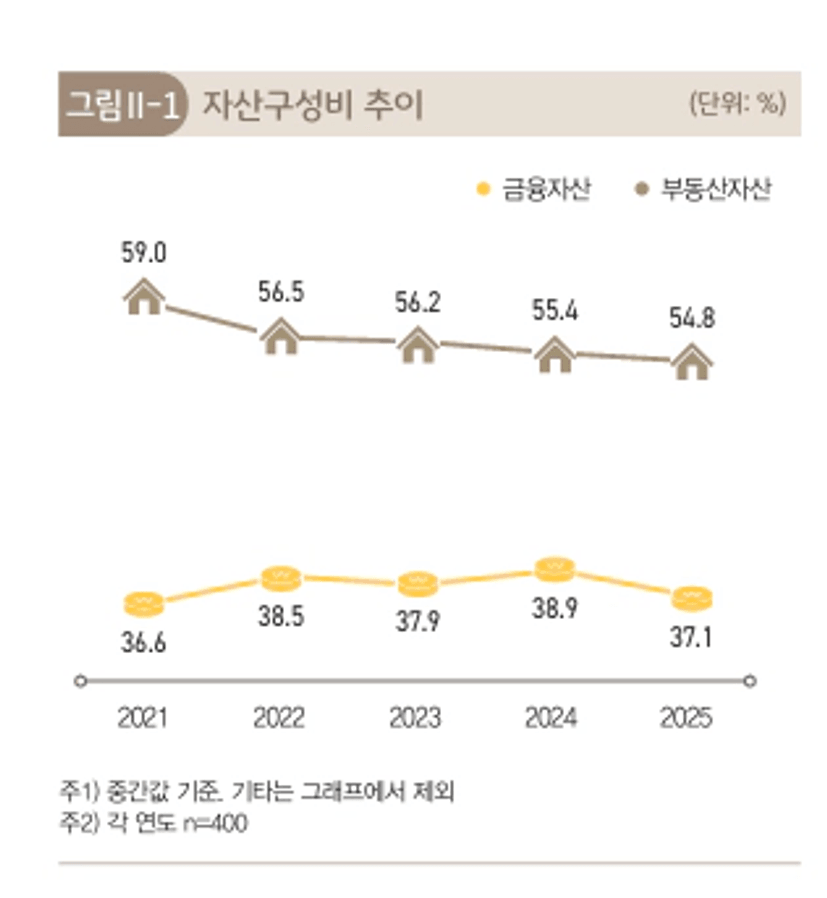 | 금융 자산 | 37.1% | 18.0% | 부자가 금융자산 비중 2배 이상 높음 |