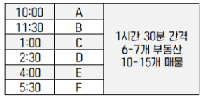 매물임장은 아래와 같이 보통 6-7타임으로 예약을 잡고 하게 됩니다!
